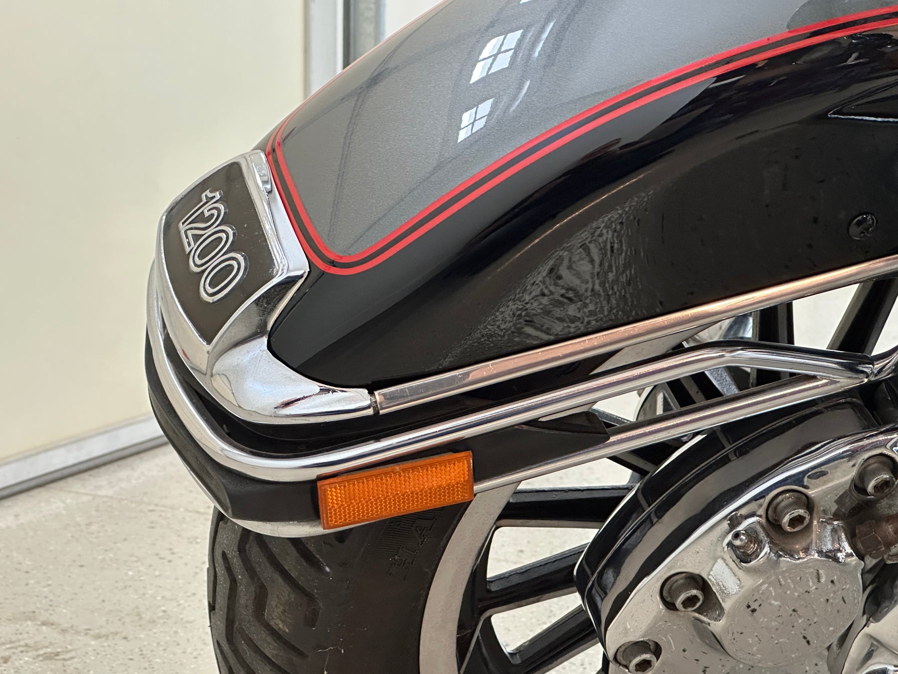 Excellent - Restored down to frame in 2011. Seldom ridden since then and always garaged. I do still have the original rear 'pizza box' although it was not painted or installed at the time of the restoration.