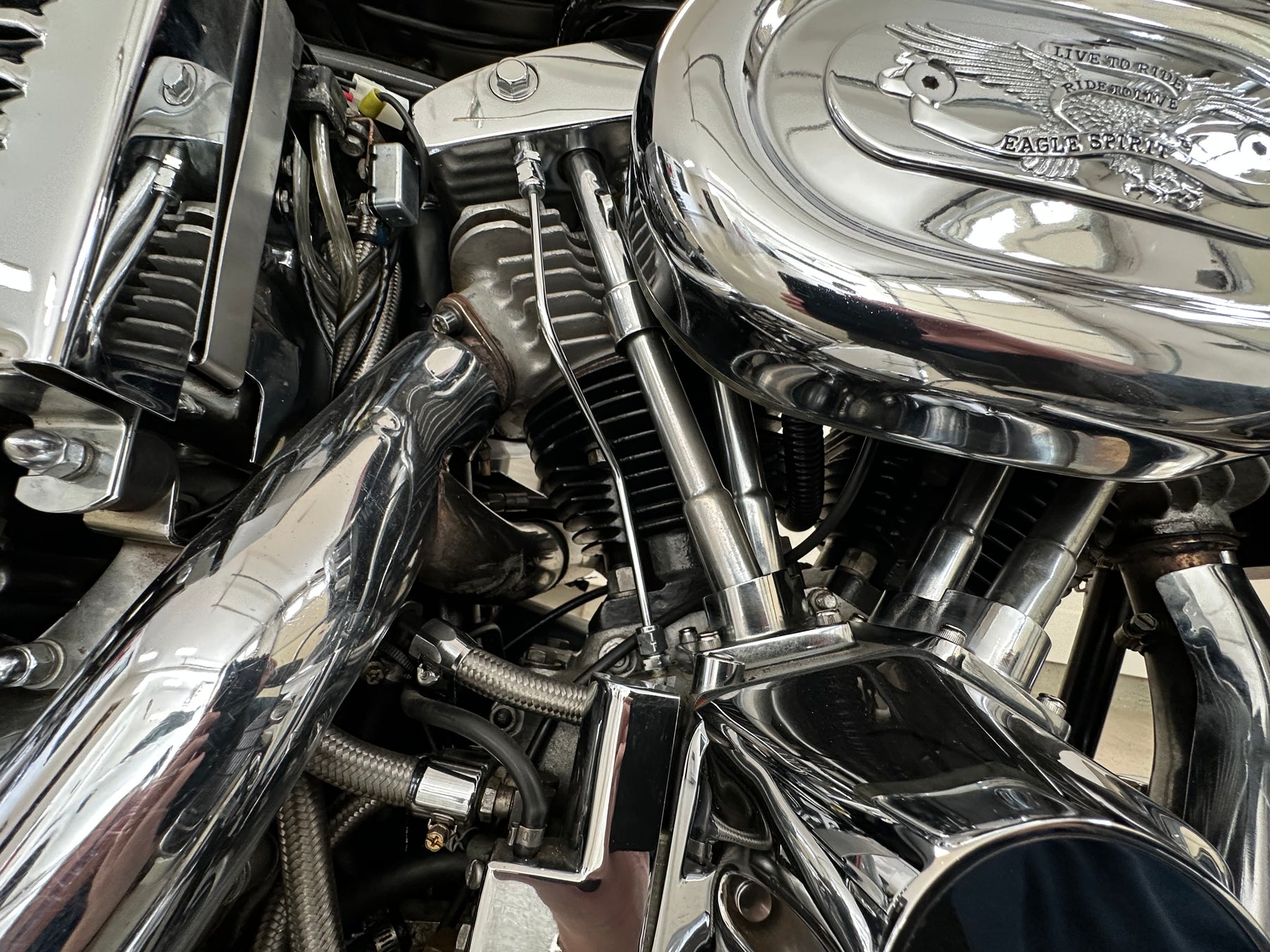 Excellent - Most replaced or re-chromed during 2011 restoration. I still have most of the original parts that were replaced or removed. Some of the rear chrome touring items were not reinstalled at the time of the restoration but were kept and convey with the bike.